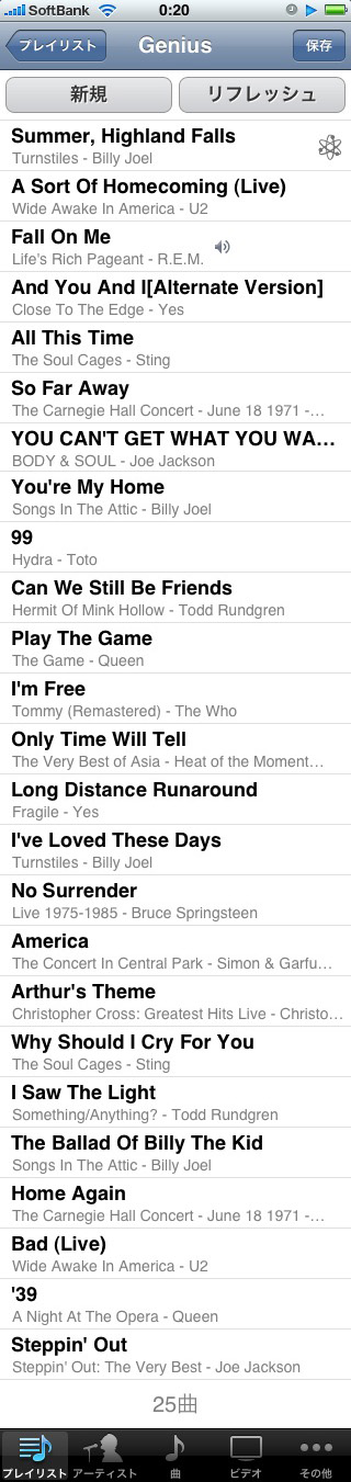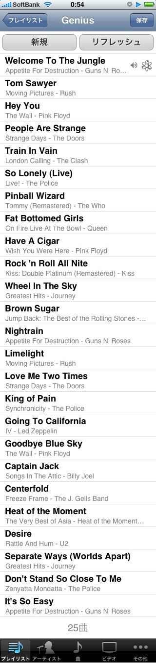 iPod nanoのカラバリとか、そんなもんどうでもいいんだけど、今日iPhone 2.1がリリースされたので、さっそくiPhoneでGenius機能というものを試してみた。