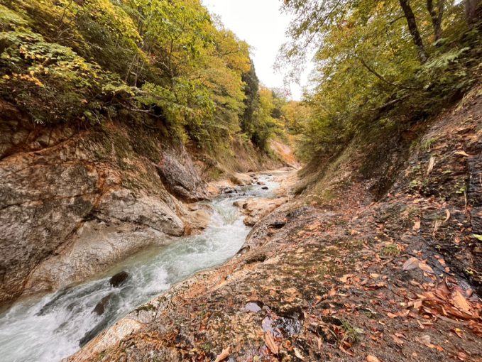 滝ノ上温泉を10時すぎに出たので、今日は大石沢出合でいいかな、という呑気な計画である。がんばれば中ノ又沢出合まで行けなくもないが、のんびり沢中2泊が前提なので急ぎすぎてもよろしくない。