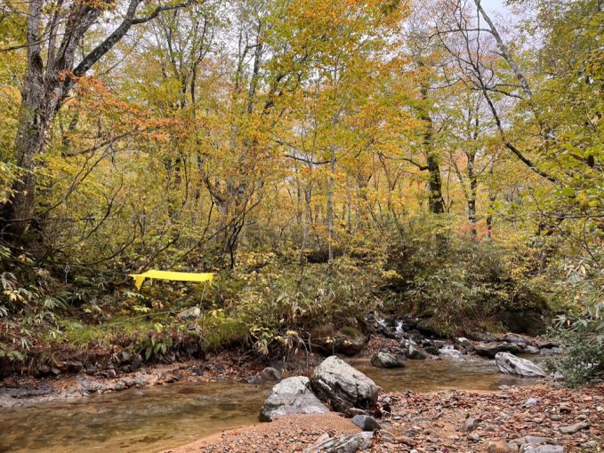 中ノ又沢出合で一本。幾夜過ごしたかわからない、なじみの幕場だ。