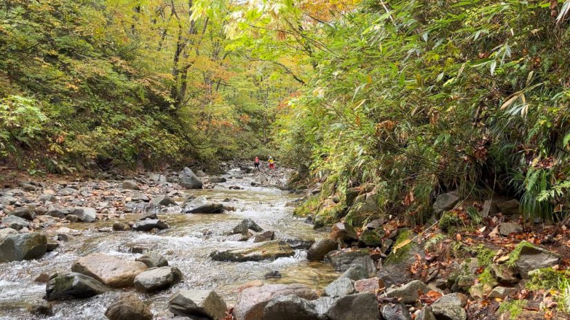 本流筋ならともかく、こんな沢を詰める奇特な人が自分以外にいるとは……。どうやら二人組っぽい。