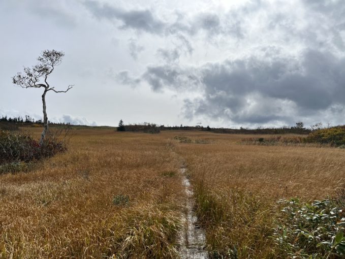 大白森のグレートフラットは草紅葉というかなんというのか、盛夏であれば濃緑な湿原が黄金色に輝き、風にそよいでいた。