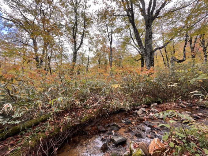 2010年に初めて大白森山荘を訪れたとき、その水場の水量に圧倒された。稜線直下なのに、こんこんと湧き出す力強さ。ブナの森の保水力がとても印象的だった。