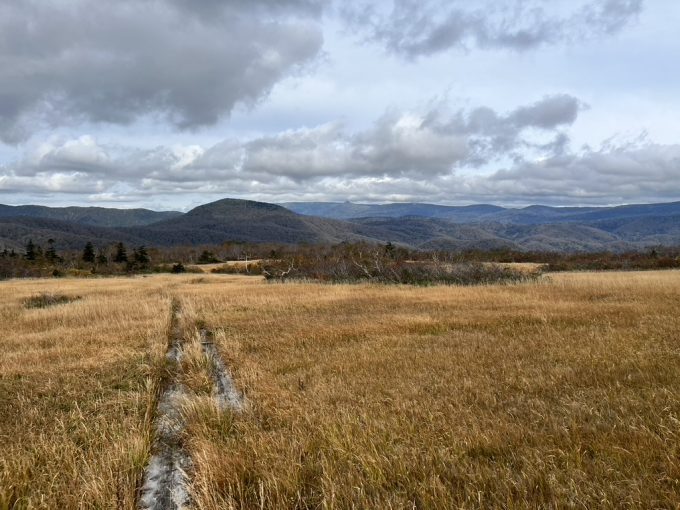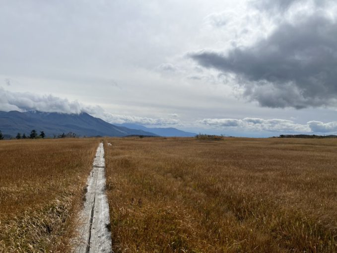 自分以外誰もいない平坦な木道を、誰にも聞こえない歓声を上げながら歩く。こういうのもいい。最高に高揚した気分で、天空の別天地を進む。