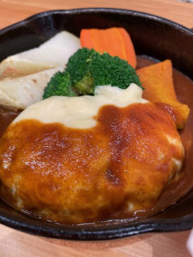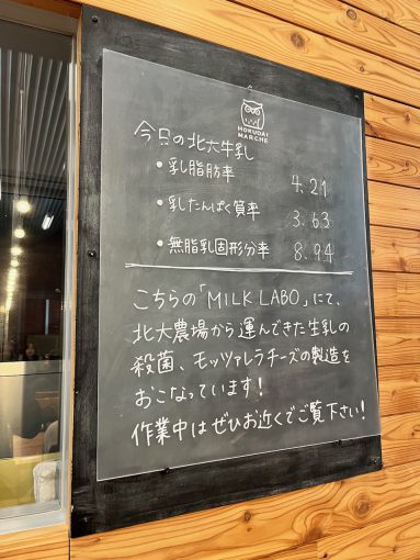 店内ほぼ観光客で占められてた感のある北大マルシェでは、定番のチーズハンバーグを。それなりのお値段はするけれど、トータルで見れば納得感ある構成。研究運営費のタシに少しでもなれば。先付け的な牛乳も濃厚でさすがの北大。