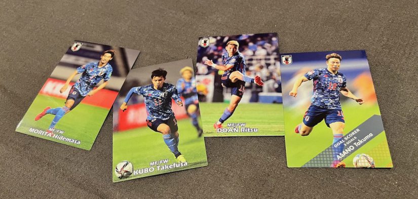 生協で安売りされていた代表ポテチを大量買いしたら、最初の2袋で引き当てたのがこの選手たち。風は、吹いている。