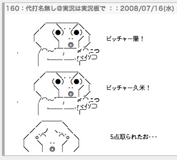 その前年、2chのプロ野球板にとある名スレが誕生した。「許銘傑のオレが豊田さん! 」である。これは元ネタ(週ベの連載)を知らないと何が何だか分からないんだけど、分かる人には堪えられない内容で、当時は36氏(作者)が降臨する水曜日が楽しみだったものだ。