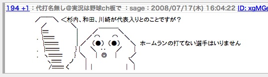 結局その翌年、プロ野球界がとんでもないことになったのは周知のとおり。のど元すぎればじゃないけど、連日、ノーテンキにオリンピック代表、なんとかジャパーン、とか騒いでいるのを見ると、不安になってくる。組織のトップが、中身を無視して「広告が集まらないから」みたいな理由で監督人事しちゃイカンのですよ。カレーにイオンに、挙げ句の果てにはカンフーパンダですか?まあ小銭は稼いどるようでけっこうだけれども、この人、本業で日本一(優勝)になったことなんて一度もないじゃない。誰とは言わんけど。
