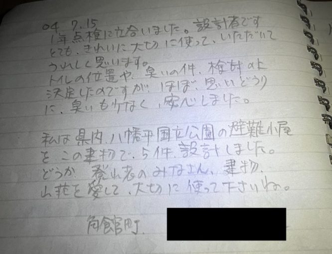 大白森山荘の設計者の方や、むかし所属していたワンゲル部の書き込みを発見してニヤニヤする。