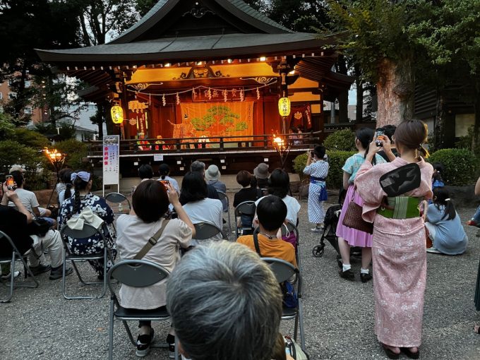 20日の夕方、晩飯どうしよっかという話になったのだが、ふと思い出して神社のスケジュールを見ると、19時から境内で奉納神楽があるではないか。