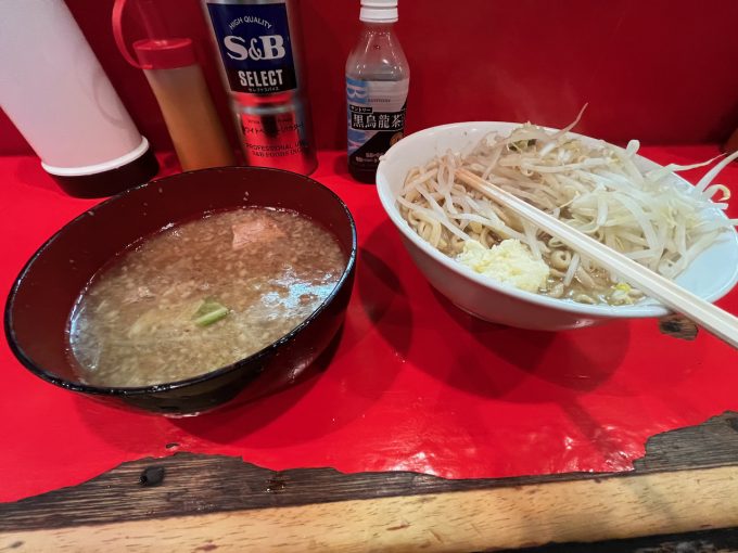 どこの二郎にもあるというわけではないが、タイトルの通り。府中の二郎はつけ麺であつ盛りを選べるんですね。これがじつに美味い。