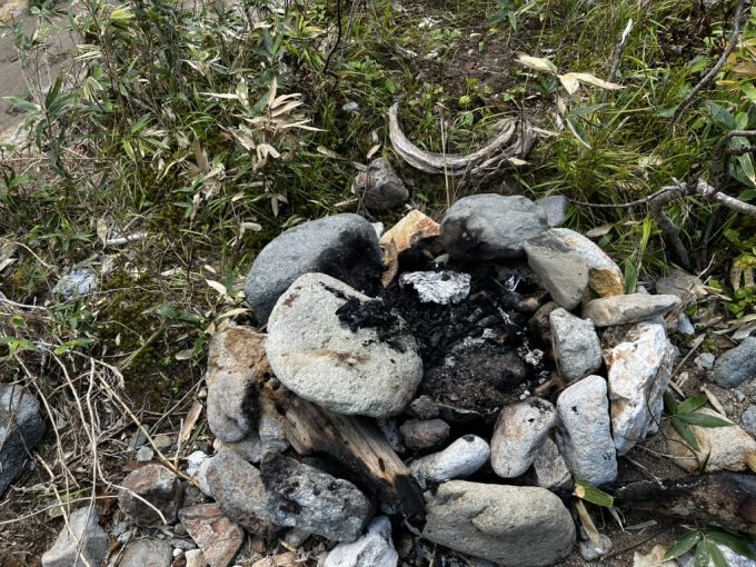 大石沢には15時すぎに到着。焚き火跡にアルミホイルがやけに多い。やたらと積み上げられた石も素人丸出しで、まさに噴飯モノである。