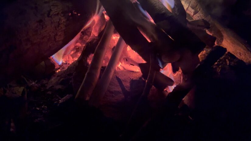切り替えて、19時頃から焚火タイム。