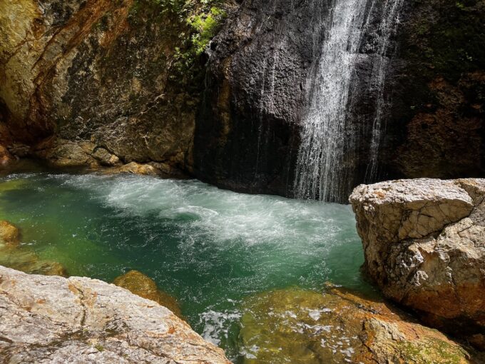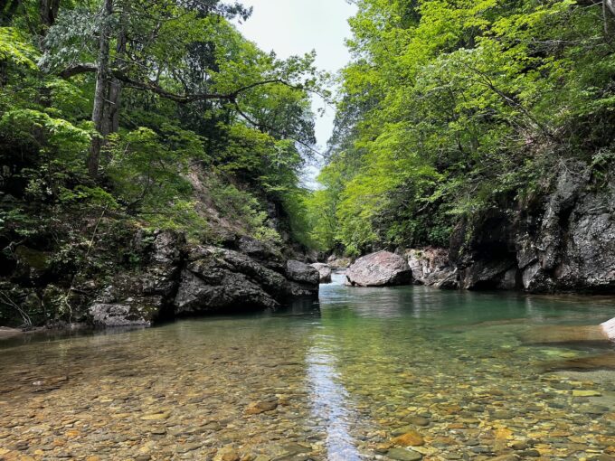 だがしかし、反応がない。丹念にポイントを探るんだけど、やはりこのゴルジュ帯は魚がいないのか、それとも手強いのか。