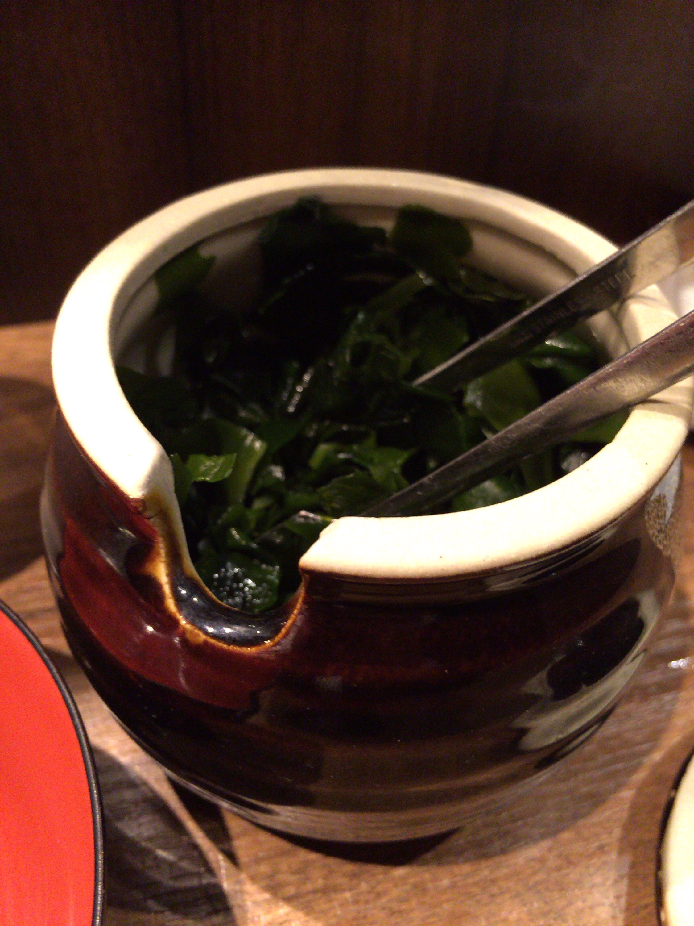 カウンターの壺の中はワカメ。無料で盛れるっていうのも珍しい。