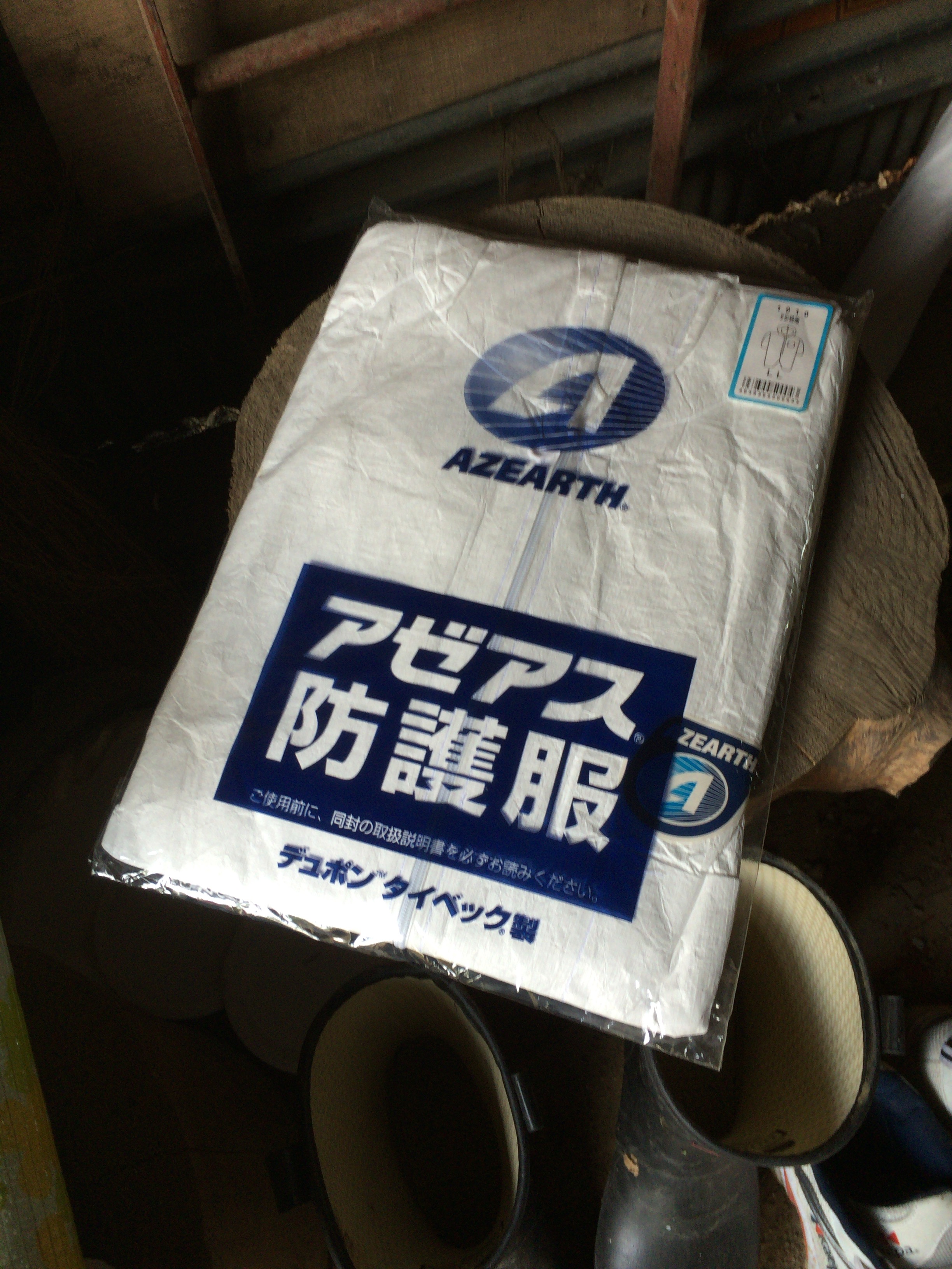 なかなか雨が止まない中、こりゃー沈殿かしらと諦めムードであったが、午後になると多少雨脚が弱くなり、どうにかいけそう。泥だらけになること必至ということで、全身ツナギの防護服を渡される。長靴を履き、スコップと鉄製の突きん棒を持ったら、いざ藪漕ぎのスタートだ。
