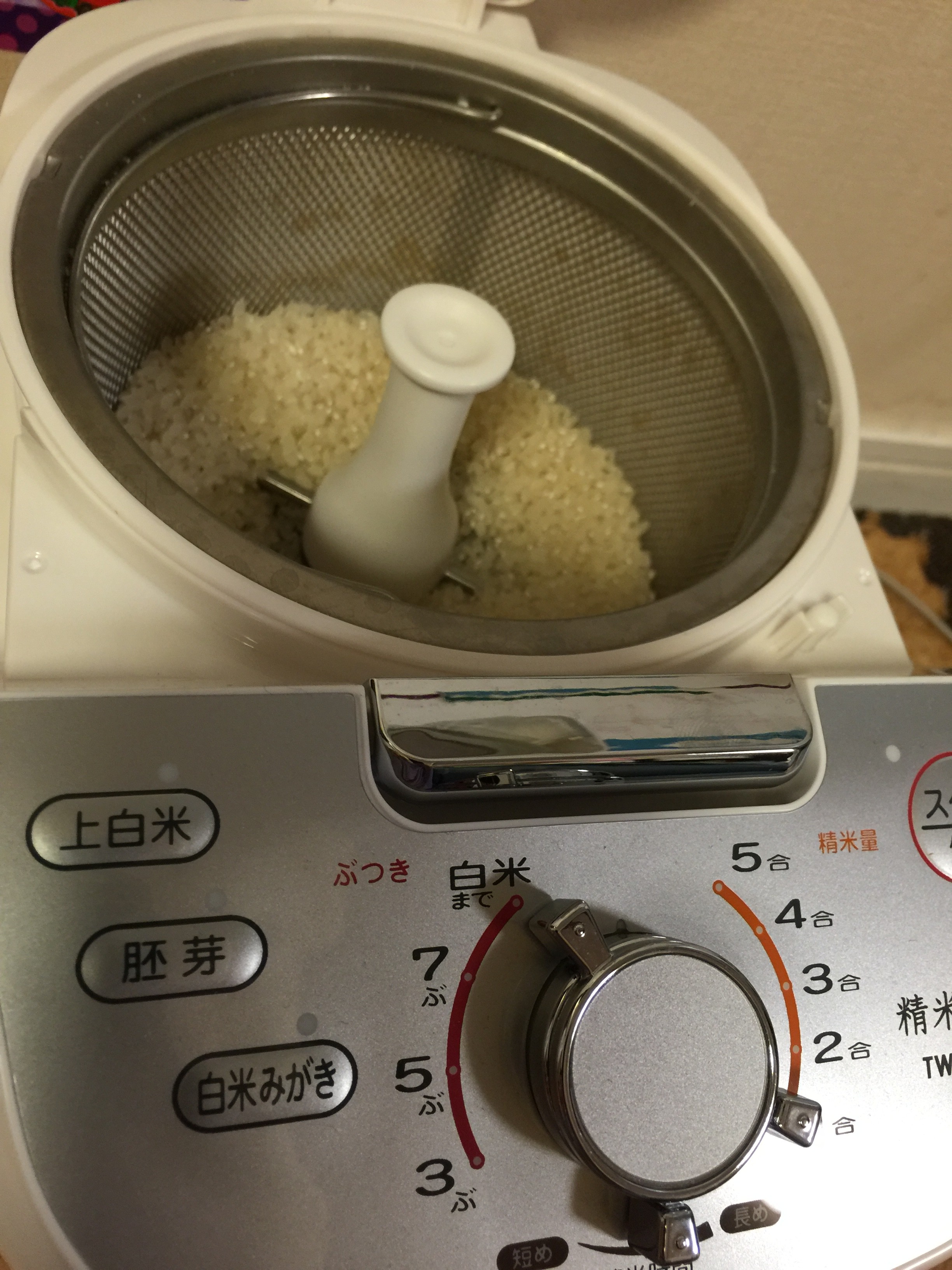あんまり考えてなかったのだが、自宅近辺には精米所がない。しかたがないので、1万円少々で家庭用精米機を購入。